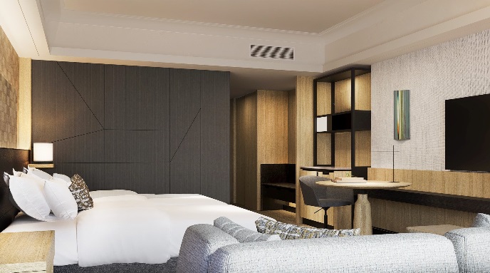 • 広々とした客室は、都会の喧騒を忘れさせる静かな空間。