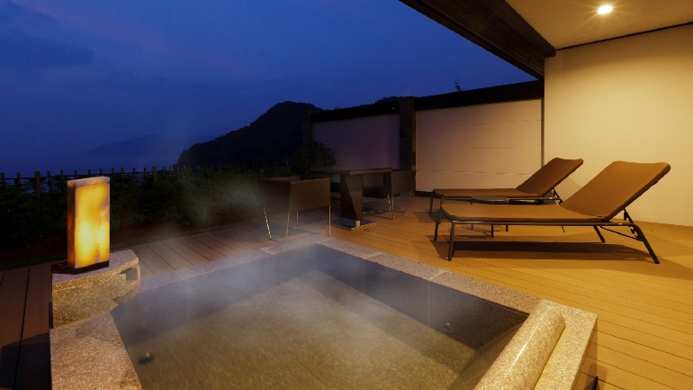 ・全室スイート&客室露天風呂付きでプライベートな湯浴みが楽しめる